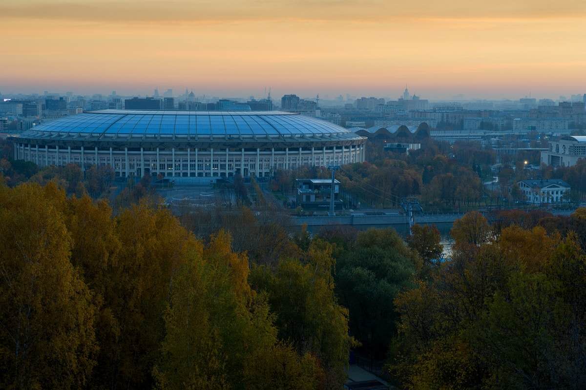 麻雀山的山腳下,莫斯科河對(duì)面,正對(duì)著觀景臺(tái)的是中央體育場(chǎng),它建于四五十年代。1980年,為迎接在莫斯科舉辦的第22屆奧運(yùn)會(huì),還對(duì)它進(jìn)行了擴(kuò)建并把它作為奧運(yùn)會(huì)的主會(huì)場(chǎng)。這樣一來,就使它成為式歐洲最好的體育場(chǎng)之一。