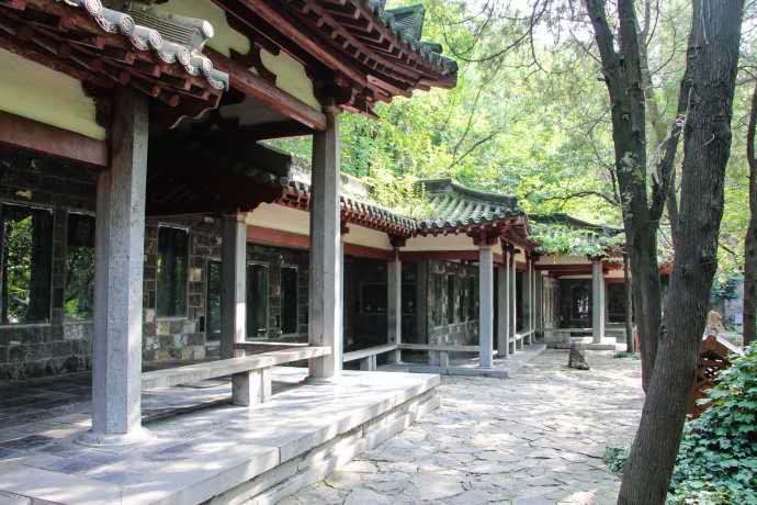 青古區(qū)養(yǎng)著悅人耳目的翠竹,白居易起居的情態(tài)都在這里,主要景點有樂天堂、聽伊亭、松岡亭等,白居易的塑像就在樂天堂內。