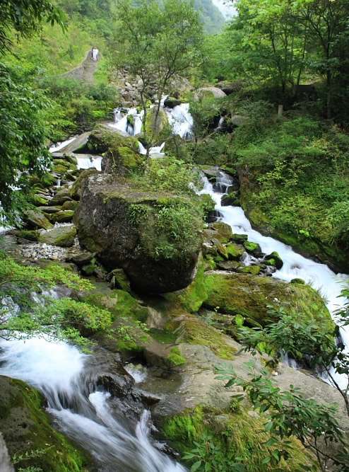 跳架溝位于金猴嶺以東,由鄭家包北西500米處暗河泉流形居,泉流在溝腦一深潭中涌出,清亮碧綠,穿林越谷瀉入木魚河,它是香溪的主要源頭。這里水質(zhì)純凈,含人體所需多種微量元素,飲用甘涼。香溪源景區(qū)北距木魚鎮(zhèn)4公里。香溪源是長(zhǎng)江西陵峽北岸的一條重要支流,它是一條地下河,發(fā)源于海拔2800米的風(fēng)景埡。香溪源東源出于龍口河、長(zhǎng)方河,流長(zhǎng)45公里,匯入興山縣東河后注入香溪;西源出于木魚河、當(dāng)陽(yáng)河、九沖河、流長(zhǎng)68.5公里,匯入興山西河后注入香溪。此處香溪源指的是西源,它源于木魚河中上游西岸的跳架溝。跳架溝位于金猴嶺以東,由鄭家包北西500米處暗河泉流形居,泉流在溝腦一深潭中涌出,清亮碧綠,穿林越谷瀉入木魚河,它是香溪的主要源頭。這里水質(zhì)純凈,含人體所需多種微量元素,飲用甘涼。