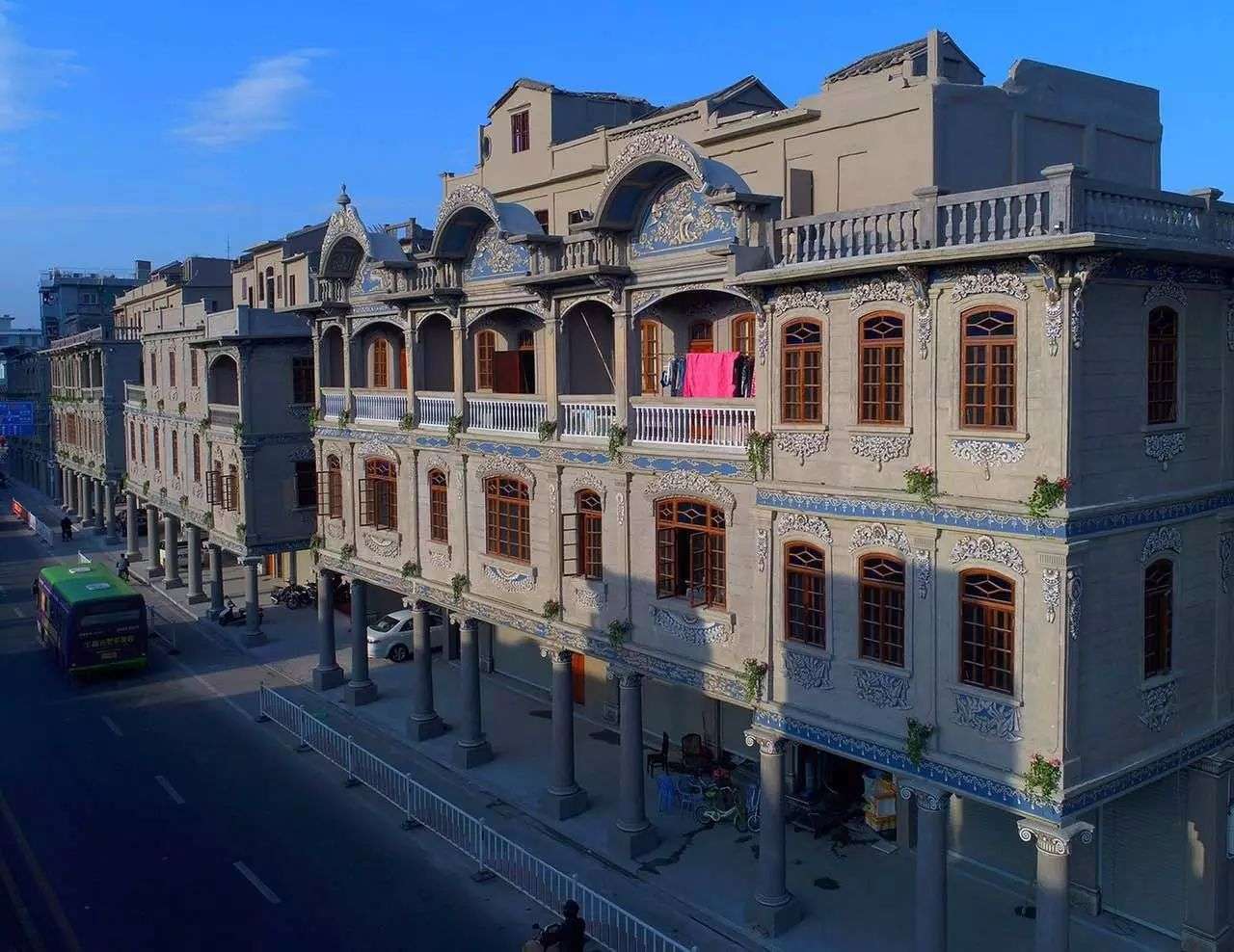 這種歐陸建筑與東南亞地域特點(diǎn)相結(jié)合的一種建筑形式可以擋避風(fēng)雨侵襲,擋避炎陽照射,造成涼爽環(huán)境,因此在東南亞十分風(fēng)靡,隨后也傳入華南地區(qū)。騎樓是我國福建、廣東、海南、廣西等沿海僑鄉(xiāng)特有的南洋風(fēng)情建筑,都是當(dāng)年華僑從南洋返鄉(xiāng)所建。