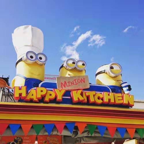 餐廳:史努比影城咖啡廳(以史努比和朋友們聚會(huì)的咖啡店為主題的漢堡包店)、Hello Kitty的杯形蛋糕店(模仿飛車形狀的杯形蛋糕)、Hello Kitty的街角咖啡店(出售Hello Kitty包子等可愛(ài)實(shí)物)、餅干怪獸的廚房(三明治店)。