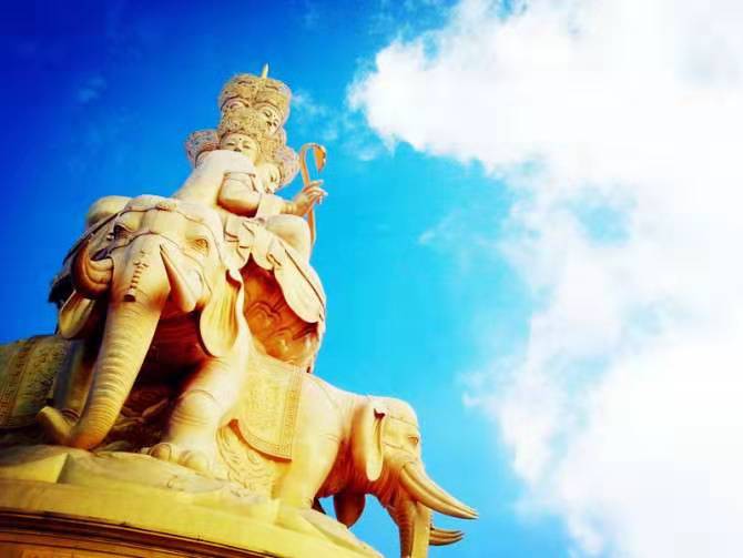 2002年,為了響應(yīng)四川省人民政府提出,把峨眉山建設(shè)成“中國第一山”的號召,峨眉山佛教協(xié)會重新規(guī)劃并制定了“恢復(fù)華藏寺改造工程”方案。本著宏揚峨眉山佛教,挖掘歷史文化遺存,振興旅游的原則,做好科學(xué)規(guī)劃,創(chuàng)建以人為本的和諧社會。搬遷“703電視臺”,拆除原華藏寺前部,整治環(huán)境,由峨眉山佛教協(xié)會具體承擔(dān),建成了高48米(含法臺須彌座)的“十方普賢”銅像,以恢復(fù)華藏寺(金頂)昔日之莊嚴(yán)。建設(shè)工程已于2004年8月動工,2005年底竣工。2006年6月18日,經(jīng)政府批準(zhǔn),舉行了隆重莊嚴(yán)的華藏寺落成典禮和十方普賢像開光儀式。