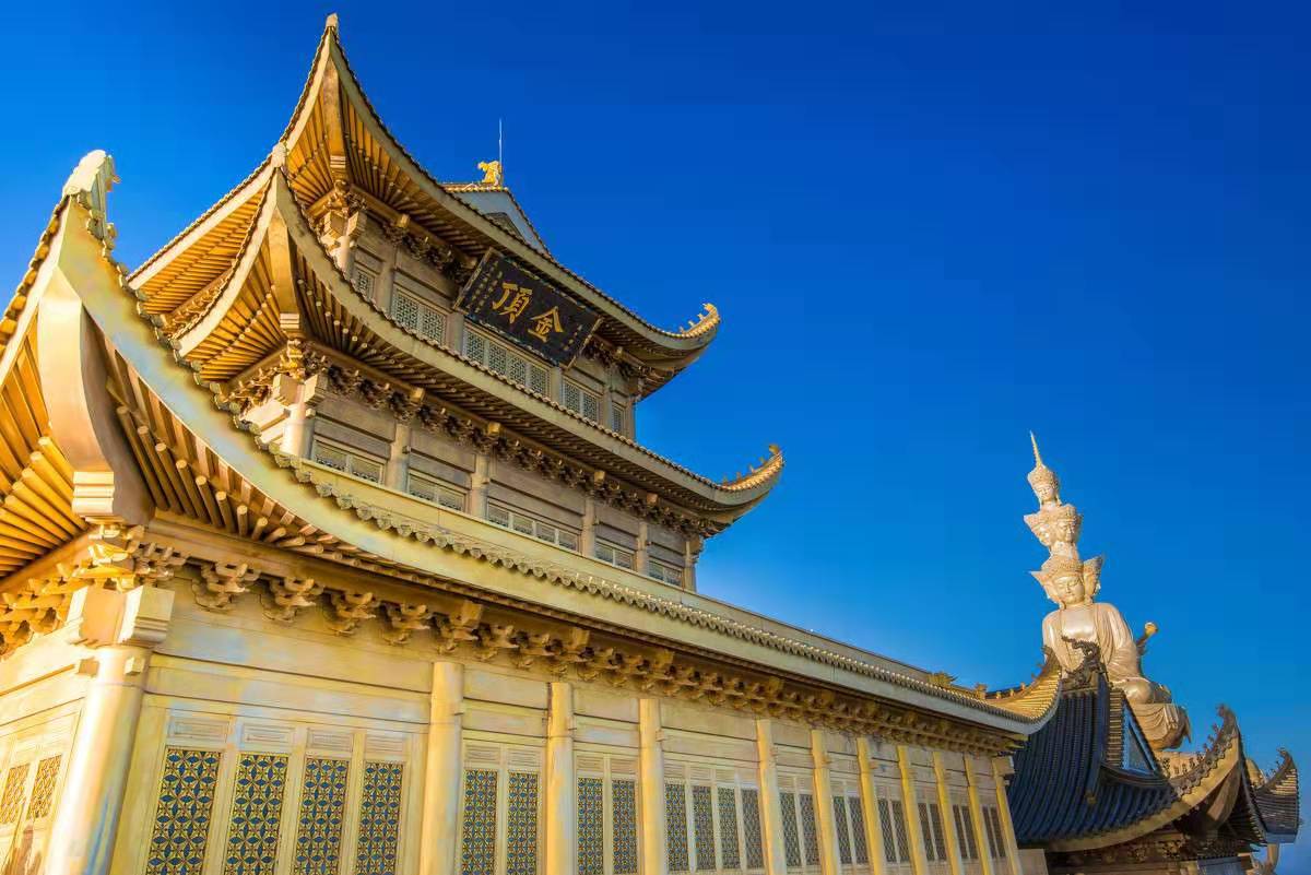 金頂是峨眉山寺廟和景點最集中的地方,高26米、總面積1614平方米的金頂及銅殿各一座,以及第一山亭“銅亭”一座,為峨眉精華所在。1983年被列為漢族地區(qū)佛教全國重點寺院。峨眉山金頂和第一山亭均為中國銅工藝大師朱炳仁領(lǐng)銜的杭州金星銅集團(tuán)公司設(shè)計建造而成。