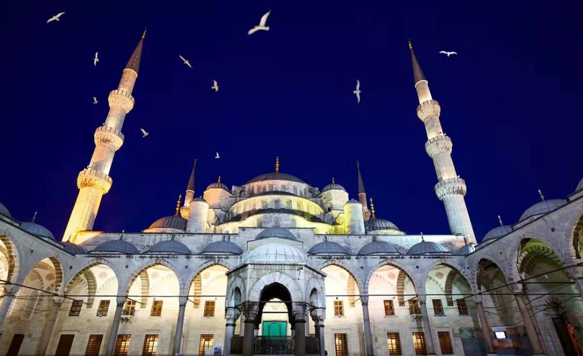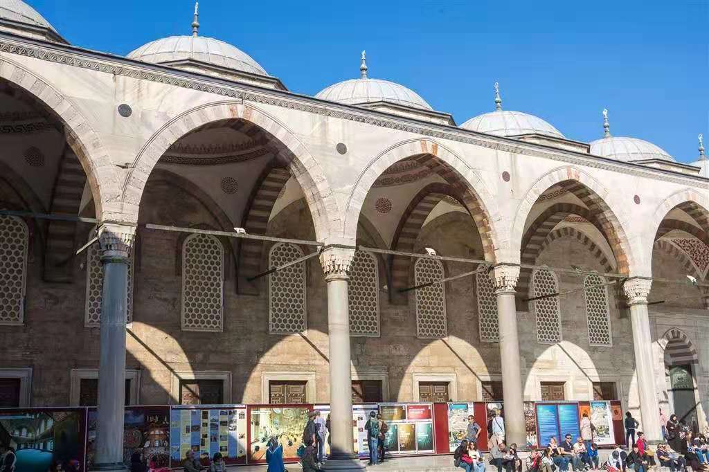 1617年,清真寺完工。它是奧斯曼帝國時(shí)代建筑和藝術(shù)的輝煌杰作。這是拜占庭的希臘文化和奧斯曼土耳其的突厥伊斯蘭教文化相結(jié)合的建筑,運(yùn)用的是拜占庭帝國希臘文化的建筑技術(shù)來表現(xiàn)伊斯蘭教文化,如果沒有四周的六座叫拜塔,那么他就會(huì)被看成一座東正教教堂,這也是巴爾干半島上信仰東正教的各國的建筑方式,是拜占庭帝國(東羅馬帝國)所遺留下來的寶貴的非物質(zhì)文化遺產(chǎn)。