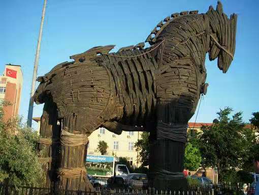 公元前9世紀(jì)古希臘詩(shī)人荷馬的史詩(shī)《伊利亞特》敘述的"特洛伊木馬計(jì)"就發(fā)生在這里。特洛伊王子帕里斯來(lái)到希臘斯巴達(dá)王麥尼勞斯宮作客,受到了麥尼勞斯的盛情款待,但是,帕里斯卻拐起了麥尼勞斯的妻子。麥尼勞斯和他的兄弟決定討伐特洛伊,由于特洛伊城池牢固,易守難攻,攻戰(zhàn)10年未能如愿。最后英雄奧德賽獻(xiàn)計(jì),讓邁錫尼士兵燒毀營(yíng)帳,登上戰(zhàn)船離開(kāi),造成撤退回國(guó)的假象,并故意在城下留下一具巨大的木馬,特洛伊人把木馬作為戰(zhàn)勝品拖進(jìn)城內(nèi),當(dāng)晚正當(dāng)特洛伊人酣歌暢飲歡慶勝利的時(shí)候,藏在木馬中的邁錫尼士兵悄悄溜出,打開(kāi)城門(mén),放進(jìn)早已埋伏在城外的希臘軍隊(duì),結(jié)果一夜之間特洛伊化為廢墟。荷馬史詩(shī)敘述的這段事跡,成為西方國(guó)家文學(xué)藝術(shù)中傳誦不絕的名篇。