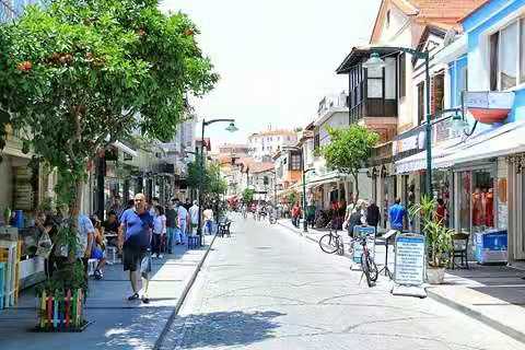 小鎮(zhèn)中心以釀酒和葡萄酒釀造聞名,葡萄酒工廠遍布切什梅半島地區(qū),大大促進(jìn)了旅游開發(fā),精品酒店,風(fēng)帆沖浪尤為出名。