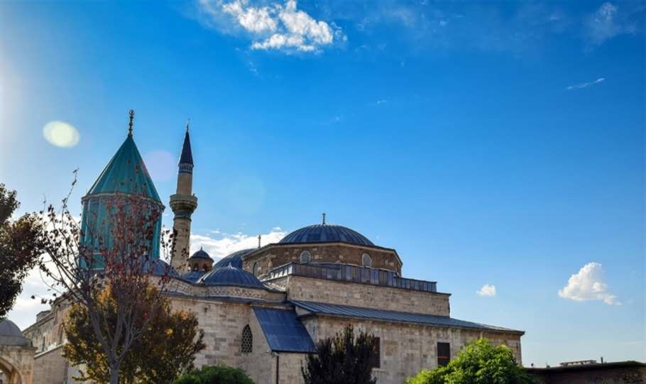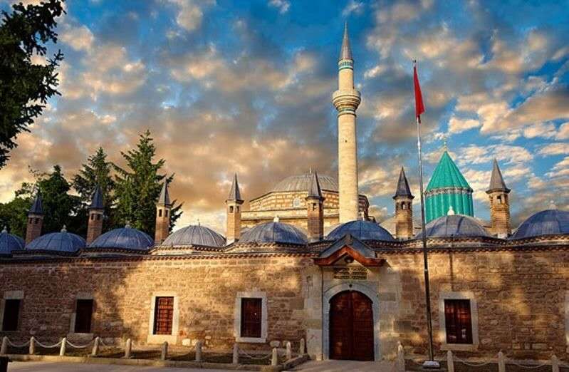 梅烏拉那陵墓使用鮮艷的綠顏色的瓷磚,是孔亞最有名的建筑。陵墓展示著梅烏拉那的著作和與教團有關(guān)的工藝品。每年12月上旬舉行盛大的旋舞祈禱儀式。