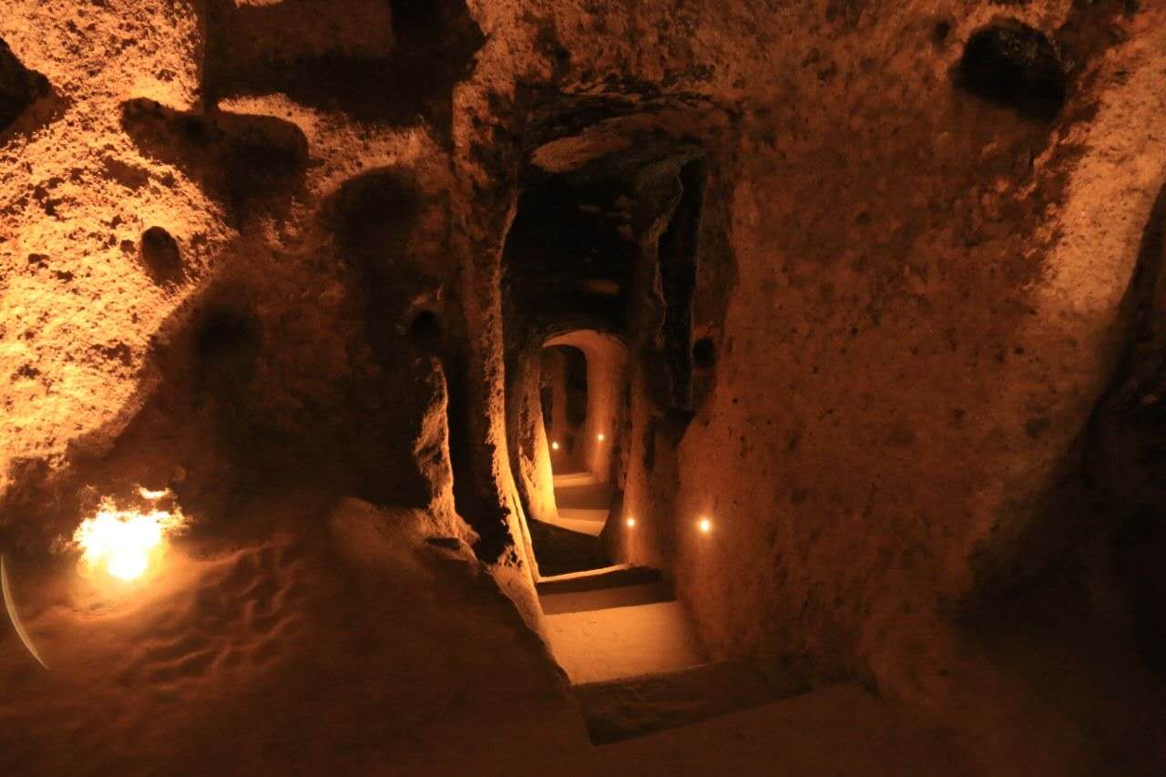 走入其中可以暗道臥室、教堂、修道院、水井、廁所、會議室和葡萄酒釀造地,而通風(fēng)煙囪直接開口到地面,深40米,貫穿整個城市上下。在這些城市中歐普那個,臥室可以經(jīng)由隧道連接到另外的臥室,隧道狹窄只允許一個人彎腰摸著墻壁走過,古代人智慧地發(fā)明了巨型石頭控制的大門,用滾軸開關(guān),危急時刻可以將隧道完全封閉但當(dāng)外面追捕的敵人,基督教在這里得到了保存和延續(xù)。