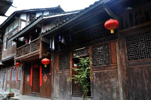 在龔灘,冉是大姓,冉家院子,已有三百年歷史。它四周封閉,進(jìn)入其中,有置身徽派民居的感覺。但是與徽派民居不同,它一面是開放的,吊腳樓廊伸向街面,正房和廂房都是穿斗式結(jié)構(gòu),都是龔灘地道的建筑風(fēng)格。