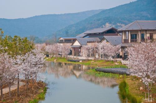 “拈花灣”的命名,一方面源于靈山會上佛祖拈花而迦葉微笑的經(jīng)典故事拈花一笑,同時也緣于它所在的地塊形似五葉蓮花的神奇山水。小鎮(zhèn)整體建筑風格與日本奈良雖然相似,但其實是源自于唐朝時期的建筑結(jié)構(gòu),融入了中國江南小鎮(zhèn)特有的水系,打造出了一種獨有的建筑風格,使得整個小鎮(zhèn)沉浸在美輪美奐的意境中。