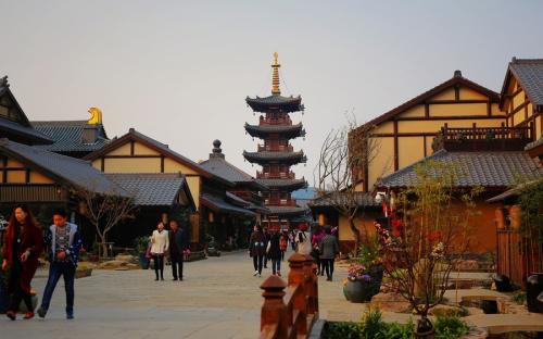 行走其中,木制的唐風建筑與橋梁,讓清雅禪意撲面而來,街道兩旁所有的建筑、景觀都像是會呼吸般的渾然天成,使人感到如同進入一個充滿禪意的世界中。