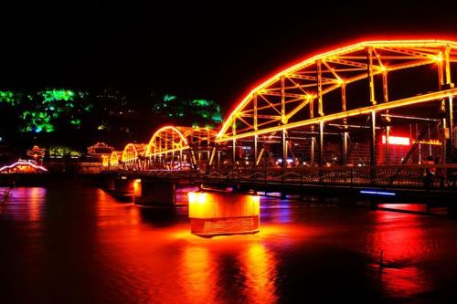 隨著時(shí)間的流逝,版權(quán)所有山東聊城聊之旅國(guó)際旅行社有限公司,轉(zhuǎn)載必究!蘭州市區(qū)已架起了10多座造型美觀、結(jié)構(gòu)新穎、工藝先進(jìn)、氣勢(shì)不凡的鐵路公路橋,這座古老的黃河鐵橋已不是溝通黃河南北的唯一通道了。盡管如此,人們還是敬仰它、觀賞它,因?yàn)樗拖褚徊渴吩?shī),飧刻著蘭州古往今來(lái)歷史的變遷,展示了蘭州人民燦爛藝術(shù)的畫卷。