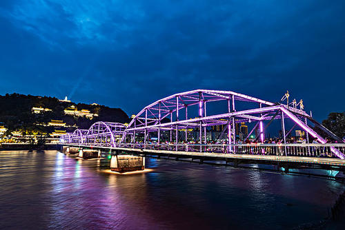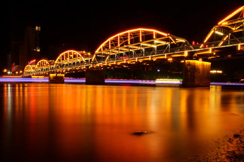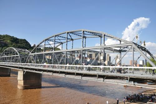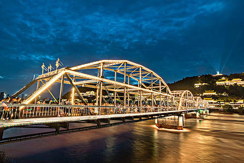 “黃啟炎傳,鐵漢秦章光隴坂;河清海晏,橋虹耀彩衛(wèi)金城。”這座古老的橋梁依然橫跨黃河之上,與白塔山相呼應(yīng)?!芭e頭迎白塔,緩步過(guò)黃河。對(duì)岸兩山峙,中流意興多?!壁w樸初的詩(shī)句頗能勾出人的游興。和諸多橋梁相比,中山橋的觀賞和紀(jì)念價(jià)值似乎比交通作用更有意義。中山橋原名蘭州黃河鐵橋,是黃河上修建最早的鐵橋,素有“天下黃河第一橋”的美稱。位于蘭州市區(qū)中心白塔山下,南接中山路、南濱河路,北連靖遠(yuǎn)路、金城路,是蘭州市區(qū)重要交通樞紐工程。中山橋建成后,時(shí)為黃河上游和蘭州黃河兩岸唯一的橋梁,方便了兩岸經(jīng)濟(jì)生活,加強(qiáng)了蘭州與西北地區(qū)各省的政治.經(jīng)濟(jì)和文化交流。在舊中國(guó),與濟(jì)南道口鐵橋、鄭州鐵橋同列為黃河上三大橋梁。1928年為紀(jì)念孫中山先生而改稱中山橋,沿用至今。