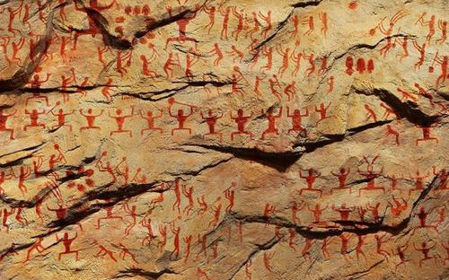據(jù)專家考證,這些戰(zhàn)國至東漢時期繪制在天然崖壁上的圖畫,至今已有兩千多年的歷史。關(guān)于花山巖畫最早的記載,出現(xiàn)在明代張穆的《異聞錄》中,文中是這樣描述的:“廣西太平府有高崖數(shù)里,現(xiàn)兵馬執(zhí)刀杖,或有無首者”。光緒年間的《寧明州志》記載:“花山距城五十里,峭壁中有生成赤色人形,皆裸體,或大或小,或執(zhí)干戈,或騎馬”。