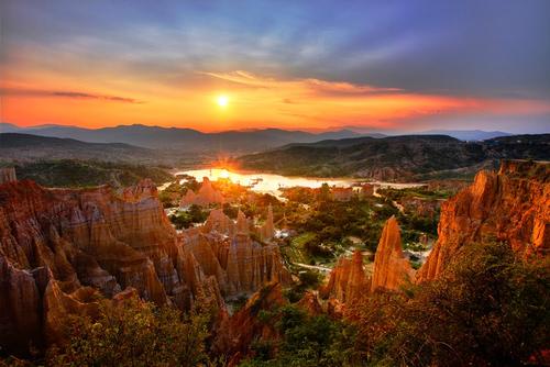 怒江,流經(jīng)云南貢山縣丙中洛鎮(zhèn)日丹村附近,由于王箐大懸?guī)r絕壁的阻隔,江水的流向從由北向南改為由東向西,流出300余米后,又被丹拉大山擋住去路,只好再次調(diào)頭由西向東急轉(zhuǎn),在這里形成了一個半圓形大灣,稱為怒江第一灣。灣中心有一個村子叫坎桶村,這里江面海拔1710余米,氣勢磅礴,灣上怒江臺地平坦開闊,高出怒江500米,構(gòu)成三面環(huán)水的半島狀小平原,小平原四周景物宜人。
