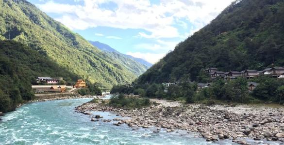 丙中洛境內(nèi)有國家級4A景點3個,怒江第一灣、石門關(guān)和丙中洛田園風(fēng)光,省政府批準的一級景點2個,二級景點6個,三級景點3個。丙中洛呈不規(guī)則四邊形,地勢北高南低,最高峰嘎娃嘎普雪山5128米,終年積雪。最低海拔為與捧當鄉(xiāng)交界處江面1430米。鄉(xiāng)政府駐地丙中洛壩子海拔1750米,面積約為15平方公里,四面環(huán)山,整個壩子被念瓦洛河和格馬洛河分割成三大塊,平壩周圍的石崖多為羊脂玉巖,南為貢當神山,北為石門關(guān),南北遙相呼應(yīng),怒江從北部的秋那桶深谷進入丙中洛,從丙中洛南邊一直到大拉,形成彎彎曲曲幾道彎,最大的一道彎在坎桶被稱為“怒江第一灣”。
