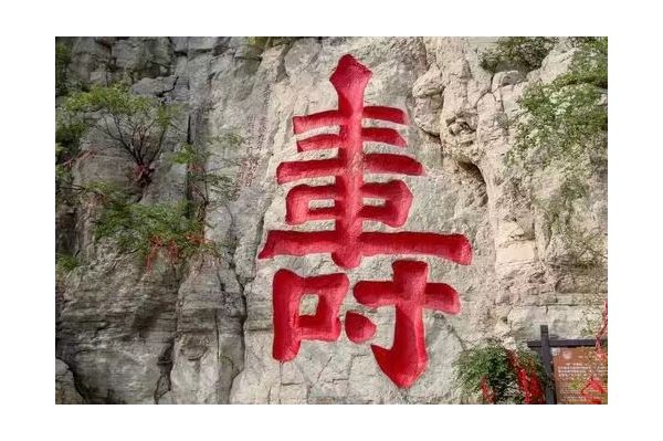 山陰處海內(nèi)外罕見的巨大鐫刻"壽"字是“壽比南山”典故的出處,該字結(jié)構(gòu)嚴(yán)謹(jǐn),端莊大方,坐南朝北,通高7.5米,寬3.7米,單是下部的"寸"字就高2.22米,為大個(gè)頭的漢子所不及,故當(dāng)?shù)赜?壽比南山"、"人無寸高"之說。這個(gè)"壽"字是明嘉靖年間衡王府內(nèi)掌司冀陽周全所獻(xiàn)書。端詳此"壽",字體揮灑俊逸,筆劃圓泣流暢,雖千鑿百斧雕成,卻不露分毫痕跡,充分體現(xiàn)了勞動(dòng)人民的聰明智慧,是書法石刻藝術(shù)的瑰寶。自此,青州官民,朝野上下,去云門山拜壽的人絡(luò)繹不絕,已有400余年的歷史了。眾從的中外游客都把能到云門山參拜大壽字作為自己最大的心愿。
