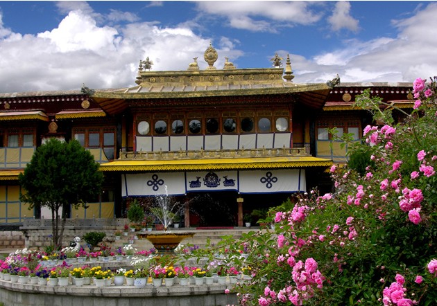 1922年,十三世達(dá)賴對(duì)羅布林卡再興土木,在園林西側(cè)建金色頗章宮、格桑德吉宮、其美曲吉宮,在西南建金色林卡,并種植大量花草樹木。