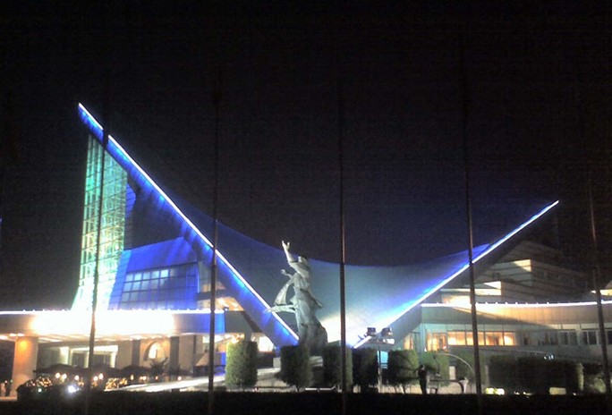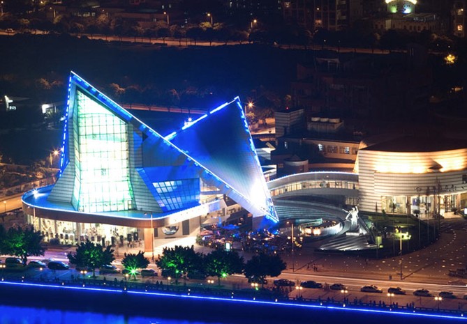 星海音樂廳位于廣州二沙島,造型奇特的外觀,富于現(xiàn)代感,尤如江邊欲飛的一只天鵝,與藍天碧水渾然一體,形成一道瑰麗的風(fēng)景線。這座以人民音樂家冼星海的名字命名的音樂廳,占地1.4萬平方米,建筑面積1. 8萬平方米,設(shè)有1500座位的交響樂演奏大廳、460座位的室內(nèi)樂演奏廳,100 座位的視聽欣賞室,和4800平方米的音樂文化廣場。整體建筑為雙曲拋物面鋼筋混凝土殼體,室內(nèi)不吊天花板,做到建筑空間與聲學(xué)空間融為一體。星海音樂廳總投資達2.5億元,是我國目前規(guī)模最大,設(shè)備最先進,功能完備,具有國際水平的音樂廳。