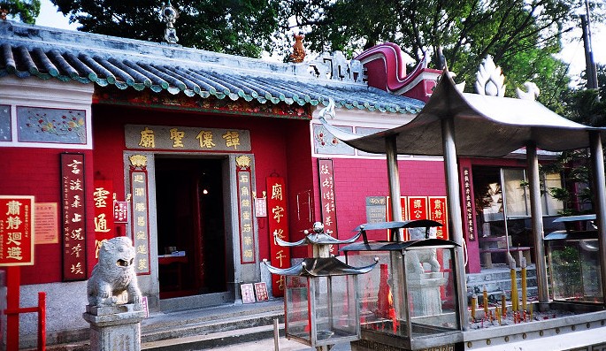 譚公廟位于路環(huán)十月初五街尾,與中國大陸小橫琴島極接近。該廟屬道教廟宇,是路環(huán)香火最盛的廟宇,建于清同冶年間,也為1862 年。廟內(nèi)除供奉譚仙圣外,更加置有一只由鯨骨雕制而成的龍舟,是一件已有百多年歷史的文物。廟內(nèi)的“魚骨舟”為鎮(zhèn)廟之寶,據(jù)說摸過鯨骨會(huì)行好運(yùn),故善男信女進(jìn)香后必順便摸一摸龍骨。而在廟外一塊刻有《鵝》字的巨形靈龜石,亦為區(qū)內(nèi)一個(gè)特色標(biāo)記。