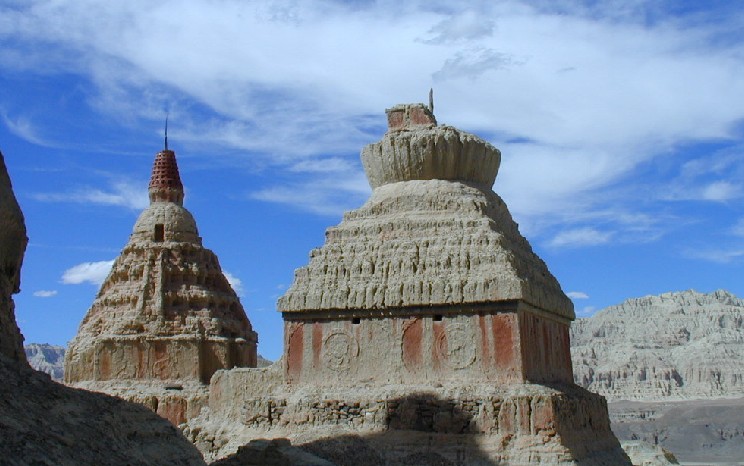 藥王山東側(cè)有個洞窟式的小廟宇,是一座造型奇特的石窟寺廟,坐落在藥王山東麓陡峭的山腰上,叫查拉魯普。經(jīng)過一千多年的風(fēng)風(fēng)雨雨,中間幾經(jīng)興衰,這座拉薩地區(qū)罕見的石窟寺廟至今仍然保存完好。石窟呈不規(guī)則長方形,面積約27平方米,洞口有一中心柱,中心柱與洞壁之間是狹窄的轉(zhuǎn)經(jīng)廊道,巖壁上有69尊石刻造像,66道兩邊排列石刻神像,北面石壁上有松贊干布與文成公主、尺尊公主以及重臣吞米桑布扎、祿東贊的造像。洞內(nèi)光線暗淡,全靠酥油供燈照明。如果去看,千萬別忘了要帶頭燈。