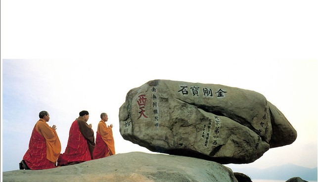 慧濟禪寺建于佛頂山上,又名佛頂山寺。普陀山奇巖怪石很多。著名的有磐陀石、 二龜聽法石、海天佛國石等二十余處。在山海相接之處有許多石洞勝景,最著名的是潮音洞和梵音洞。島的四周有許多沙灘,但主要的是百步沙和千步沙。千步沙是一個弧形沙灘,長約3里,沙細坡緩,沙面寬坦柔軟,是一個優(yōu)良的海水浴場。夏天去游覽,可帶上游泳衣在這里暢游。