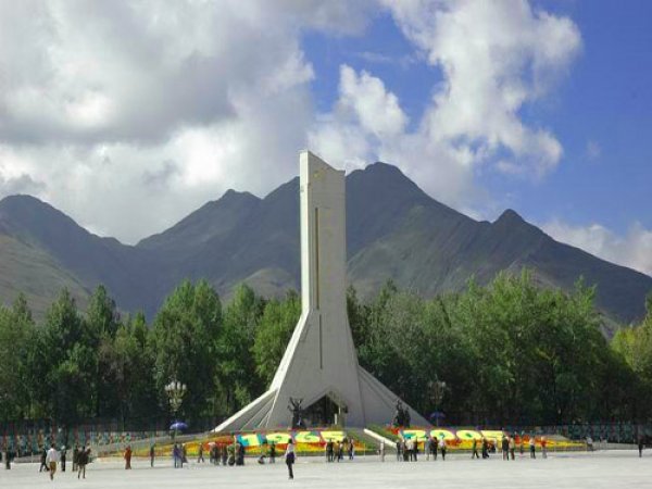 達(dá)扎路恭紀(jì)功碑位于西藏展覽館前公路南側(cè)。赤松德贊普在位時(shí)(755-797)所立。石碑立于高l.92米,面積22.25平方米的正方形基上。臺(tái)基正中為三級(jí)階梯形碑座,高1.32米。碑身通高巴米,呈方柱形,下寬上收。碑身北、東、南三面均刻有藏文楷書,北側(cè)有字68列,東側(cè)16列,南側(cè)74列。碑身完好,碑文大部分尚可辨認(rèn)。