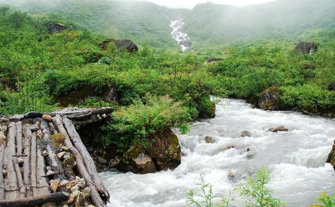 朵尼拉繪聲繪色的述說,使我們這些外來人深切地感到,墨脫是個神秘的地方,難怪在這里有著許多可供信徒朝拜的圣地,其中著名的就有仰桑河、布達切波雪峰和宮堆頗章。清澈味甜的仰桑河。