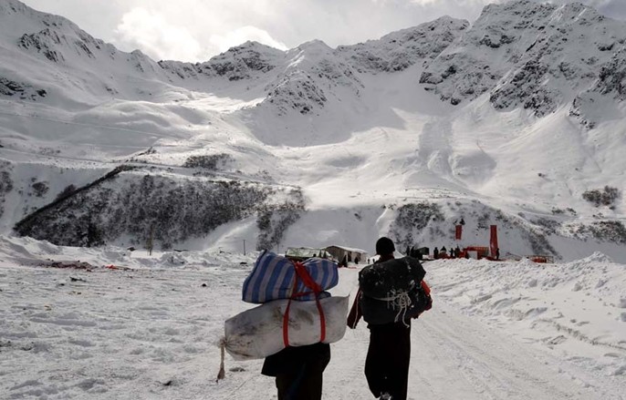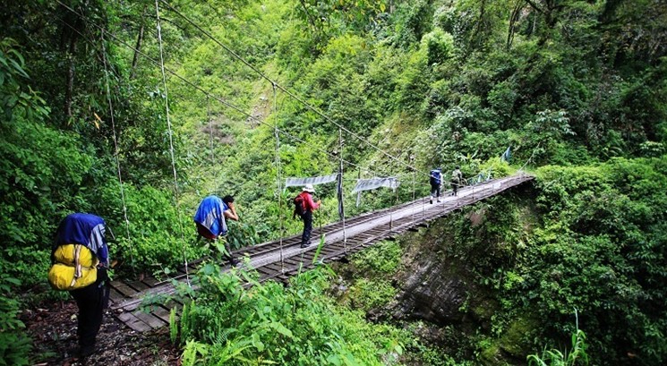 因為地勢隱蔽,墨脫被稱為“隱藏在云霧、雪山、密林中的人間絕域”、“地球上的最后秘境”。從前去墨脫,必須翻雪山、攀峭壁、穿密林,用自己的雙腳長途跋涉、步步丈量。通往這天堂般美麗地方的道路如同煉獄,江兩岸山壁陡峭,深谷中江水洶涌,許多路段是在峭壁上鑿成的天險,一面是陡峭的山崖,一面是萬丈深淵;山口處不分冬夏都是白雪皚皚,沿途是猝不及防的雪崩、驟雨、飛石、泥石流諸多艱險。