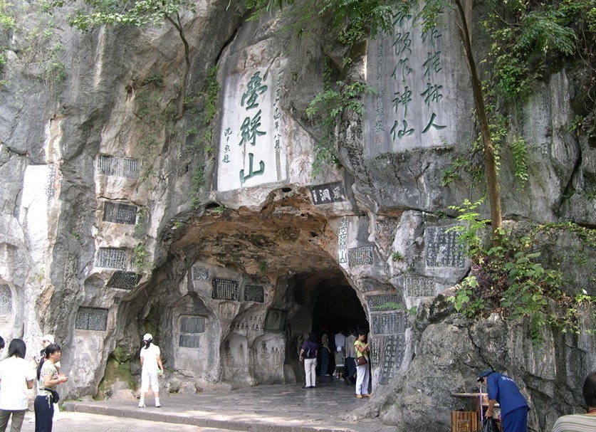宋人劉克莊《風(fēng)洞詩》“風(fēng)干天地間,惟桂尤其雄”“不知何處起,但覺來無窮”說出風(fēng)的奇;明王鳴鶴《疊彩山題詩》:“春游門壑暖風(fēng)回”,是春天的風(fēng);清徐德升《風(fēng)洞山詩》:“風(fēng)聲習(xí)習(xí)洞門窄”,是夏日的風(fēng);明蘇?!队物L(fēng)洞詩》:“高臺受和風(fēng)”,是南國之秋的氣候;清周甫麟《疊彩山詩》:“洞疑詩思曲,風(fēng)逼酒瓶凍”,則是寒冬的景象了。洞里的風(fēng)總是清新、和煦、涼爽、均勻交替著,這是最奇特的地方。風(fēng)洞既是風(fēng)的世界,又是文物寶庫,是桂林山水一個重要景點。