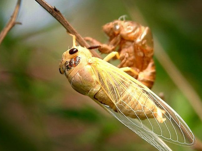 蟬,俗稱“知了”、“知了龜”。因?yàn)樗鼤?huì)“金蟬脫殼”,當(dāng)?shù)厝擞址Q它為“神仙”。晉人郭璞在《蟬贊》中寫道:“蟲之清潔,可貴為蟬。潛蛻棄穢,飲露恒鮮。”清高脫俗的蟬,不但會(huì)唱一曲嘹亮的歌,它還是人們餐桌上的一道美味佳肴,綠色食品。不是嗎?每當(dāng)人們將捉到的金蟬腌制油煎后,用鮮嫩的荷葉一包,那撲鼻的香味,讓人垂涎三尺,斯文掃地。因此,夏日的夜晚,乘涼捉蟬,變是人們的一大消遣活動(dòng)。