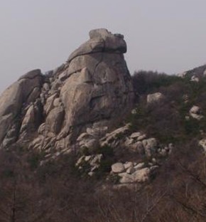 在黃河岸邊的艾山東南坡上,有一塊奇異的大石頭攀附在崖壁上,遠(yuǎn)遠(yuǎn)望去,猶如一只大蛤蟆一顛一顛地朝山上爬行。