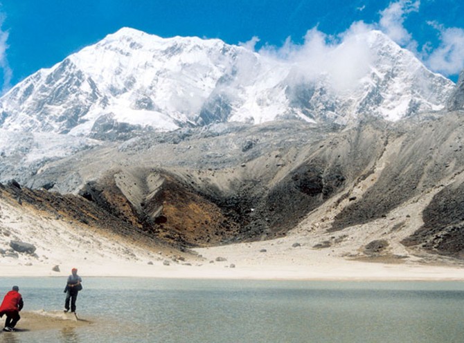 海拔8463米,地處喜瑪拉雅山脈中段,珠峰的東南方,是世界第五高峰。峰體上部覆蓋著厚厚的冰雪,坡谷中發(fā)育有巨大的冰川,冰川上多鋸齒型的陡崖和裂縫,冰崩十分頻繁。山腳地勢(shì)開(kāi)闊,水源充足,森林茂密,春天各色杜鵑競(jìng)相天放、絢麗奪目。