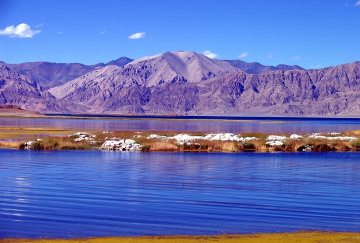 拉軌崗日山的東面是海拔4200米,面積6400平方公里的高原湖泊---羊卓雍錯(cuò),藏語(yǔ)意為“天鵝池”。湖槽狹長(zhǎng)曲折,形似一只展翅欲飛的天鵝,藏族人民尊之為“圣湖”。相傳,有位仙女因思凡下界而犯天規(guī),上天把她變成天鵝貶在這里,諸峰的神女們都與她戀戀不舍,常來(lái)此洗澡與她相伴。而今,洗澡的神女們沒有了,只留下了這個(gè)美好的傳說(shuō),以及湖中豐富的裸鯉魚和夏季成群的水鴨。“圣湖”南面有座千年古剎桑丁寺,屬喇嘛噶舉派(自教),是西藏唯一女活佛多吉帕姆的主持院。
