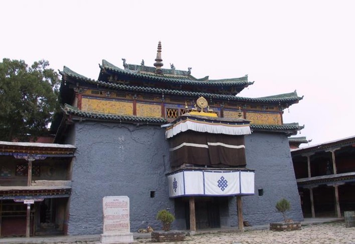 其主體建筑為三層藏漢合壁建筑,墻體和布局系藏式建筑,屋頂為漢式琉璃歇山頂,由金殿、回廊、護法神殿、般若母殿和東西南北無量宮殿等主要建筑單元組成。主殿上下有房49間,占地面積1500平方米。版權(quán)所有山東聊城聊之旅國際旅行社有限公司,轉(zhuǎn)載必究!底層大殿供奉釋迦牟尼佛像和八大隨佛弟子塑像,西邊經(jīng)堂內(nèi)分別供奉《甘珠爾》和《丹珠爾》大藏經(jīng);第二層供奉釋迦牟尼佛和布頓大師塑像,其左右為壇城殿,前殿供奉慈尊佛像和十六羅漢像。
