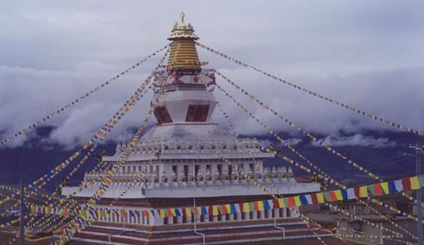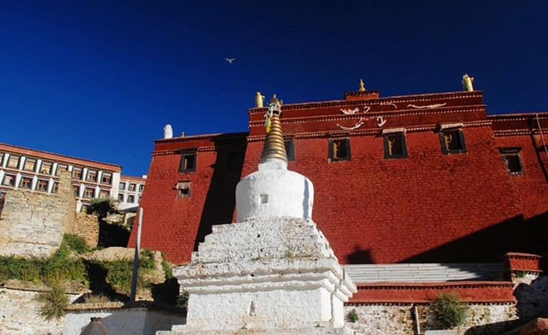 通追拉康東側(cè)原有4個靈塔殿,殿內(nèi)均供有一座靈塔,“文革”時被毀?,F(xiàn)已修復(fù)了江袞•達哇堅贊的靈塔殿及殿內(nèi)的靈塔,面積40多平方米。四川阿壩州為該殿送來了千尊頓巴辛繞鍍金泥塑佛像。據(jù)說新修復(fù)的通追拉刃和靈塔殿的靈塔內(nèi)都保存有達哇堅贊的舍利,甚為珍貴。