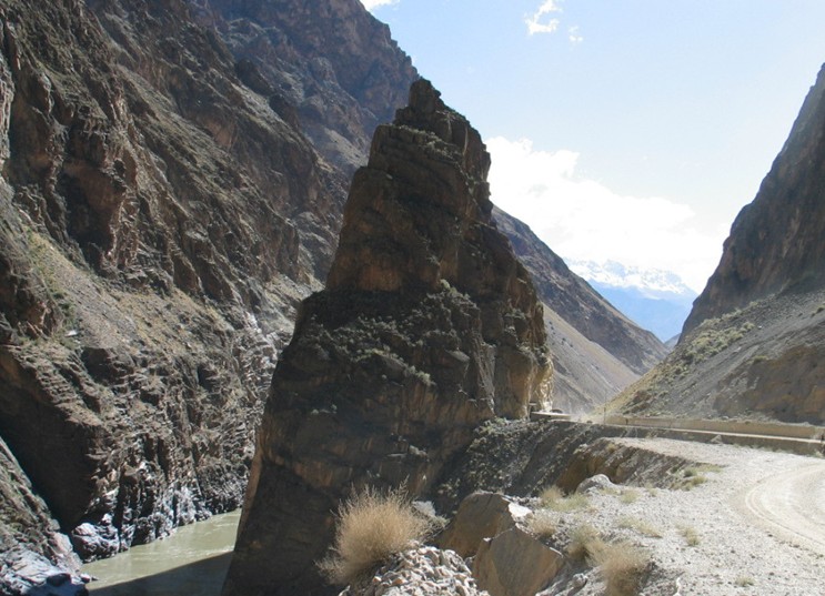 怒江在青藏高原上流淌,宛如一條綠地毯上的藍飄帶。進入藏南八宿前后,她便進入深不可測的高山峽谷。從海拔3000多米一降再降,降到海拔700余米的深槽。