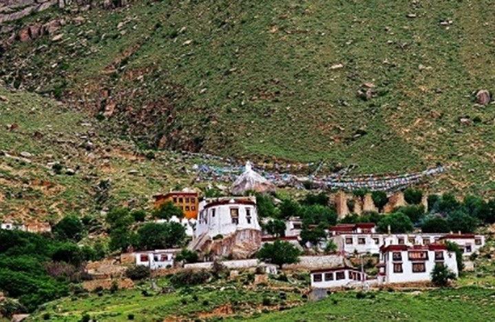 同卡寺全稱為學(xué)呢八宿嘎登桑珠林寺,俗稱同卡寺。它位于八宿營(yíng)縣同卡鄉(xiāng)政府所在地,離縣城250公里,通公路。該寺是由洛巴•江村生格于公元1473年創(chuàng)建的,為功德林拉讓(西藏政府?dāng)z政之一)所屬的一座寺廟。