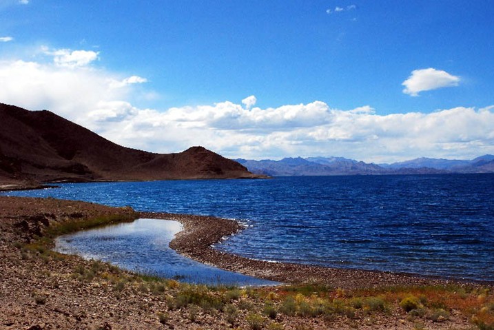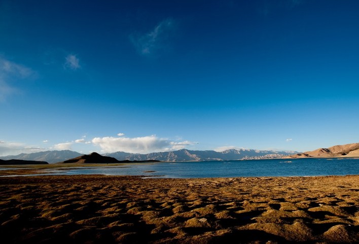 班公湖又稱錯(cuò)木昂拉紅波,藏語意為“長脖子天鵝”,有世界上海拔最高的鳥島,位于阿里地區(qū)日土縣城西北約12公里處,是中國日土縣與克什米爾交界的國際性湖泊,呈東西走向,長約155公里,南北寬約15公里,最窄處僅五米。湖面海拔4240米,水深57米,流域面積為28714平方公里。班公湖為內(nèi)陸湖,湖水東淡西咸,位于日土縣境內(nèi)為淡水,西部與克什米爾交界處為咸水