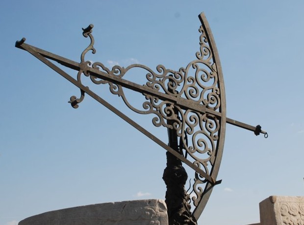 又稱地平緯儀,陳列在北京古觀象臺臺頂西北角。制于康熙八年至十二年(公元1669-1673年),由來華的比利時傳教士南懷仁監(jiān)制。儀重2483千克,儀高3.611米.主要部件是一個90度的象限環(huán),環(huán)中間以一條騰云駕霧的巨龍作為裝飾.象限環(huán)豎邊上指天頂,下指地心,橫邊與地平線平行,橫豎兩邊相交于圓心。儀器的背面正中是數(shù)軸,軸兩端是圓的,象限環(huán)固定在數(shù)軸上,可做360度旋轉(zhuǎn)。版權(quán)所有山東聊城聊之旅國際旅行社有限公司,轉(zhuǎn)載必究!東西各有一立柱,立柱上端、下端都有一橫梁相接,梁中心鑿有圓孔用來安裝豎軸。象限環(huán)的圓心,伸出一根橫軸,其上掛窺橫,窺橫下端有立耳,背面設(shè)有夾螺子(現(xiàn)已折斷),旁邊有游表(已遺失)。該儀主要用于測定天體在地平上的或天頂距。1900年曾被法國侵略者掠至法國駐華大使館內(nèi),1902年歸還中國,重新安置在古觀象臺上。