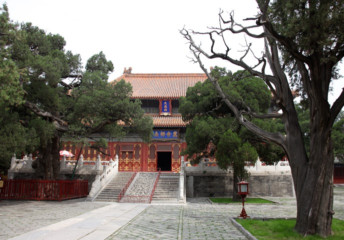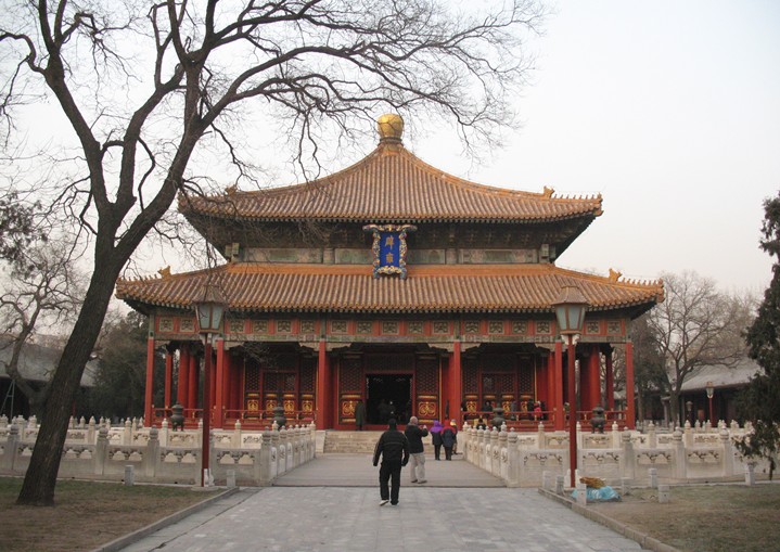 全國重點(diǎn)文物保護(hù)單位。位于北京城內(nèi)東城區(qū)國子監(jiān)街。占地2.2萬平方米。歷代多次重修,為元、明、清三代祭孔建筑,又名"先師廟"。廟坐北朝南,大門稱先師門,仍保持元代風(fēng)格。前有琉璃壁及下馬碑,進(jìn)門東西有碑亭、神廚、神庫等,并立有元、明、清三代進(jìn)士題名碑118 方,題刻歷代進(jìn)士5萬多名。進(jìn)大成門至第二進(jìn)院,正殿名大成殿,為孔廟主體建筑,面闊9間,進(jìn)深5間,黃琉璃筒瓦重檐廡殿頂,殿前月臺(tái)三出陛,殿內(nèi)供奉孔子及"四配"、"十二哲"。殿前有600余年樹齡的古柏一株,名"除奸柏",亦名"觸奸柏"。有古井一口,清高宗賜名"硯水湖"。大成殿后有崇圣祠,自成院落,為祭祀孔子先祖之地。今辟為首都博物館,展出北京地區(qū)出土的歷代珍貴文物。