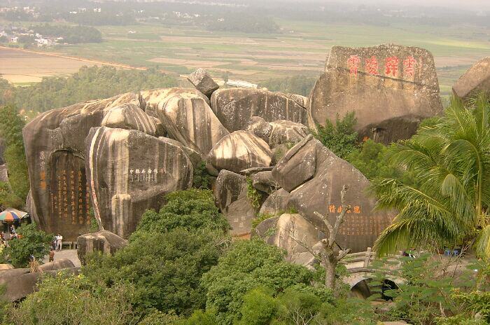 電視劇連續(xù)劇《紅樓夢(mèng)》片頭中有一塊神姿仙態(tài)的“飛來(lái)石”,它就在被稱(chēng)為“海南第一山”的東山嶺上。東山嶺風(fēng)景區(qū)在萬(wàn)寧市東2公里處,因三峰并峙,形似筆架,歷史上又叫筆架山,是海南開(kāi)發(fā)較早的旅游景點(diǎn)之一。曾與五公祠、鹿回頭、天涯海角等景點(diǎn)齊名,素有“海南第一山”之稱(chēng)。東山嶺面積有10平方公里,海拔只有184米高的東山嶺遍山都是奇石,前面提到過(guò)的那塊石頭就是“一線天”勝景之處的風(fēng)動(dòng)石,它重達(dá)百余噸,能在海風(fēng)的吹拂和人力的推搖下產(chǎn)生晃動(dòng)。東山嶺瀕臨南海,景色十分秀麗。嶺上還有多處古跡和廟宇,均為省重點(diǎn)保護(hù)文物,其中潮音寺尤為海外僑胞重視。