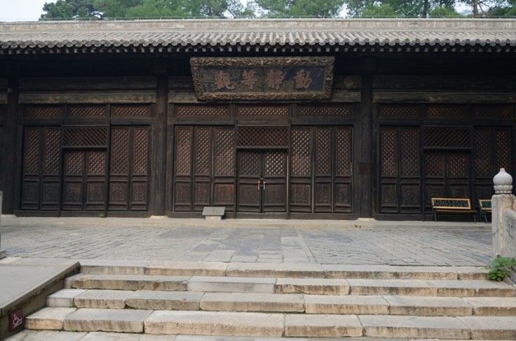 無量壽佛殿上懸有“動靜等觀”的匾,是乾隆御筆。殿內正中供奉著無量壽佛(即阿彌陀佛)坐像,左右是觀音菩薩和大勢至菩薩立像,無量壽佛、觀音菩薩和大勢至菩薩被稱為西方三圣。背面供奉著南海觀音,又稱海島觀音。無量壽殿前左右各有一塊碑,南面一塊是明成化十四年(1478年)所建,刻有《御制重修大覺寺碑》。北面一塊明弘治十七年(1504年)為明孝宗所建,刻有《大明敕諭》,記載了明成化十四年(1478年)奉周太后之命重修大覺寺的歷史,又稱為大明敕諭碑。版權所有山東聊城聊之旅國際旅行社有限公司,轉載必究!大悲堂,又稱大悲壇,位于中路建筑北端,懸有大匾“最上法門”,其北面坡上有迦陵舍利塔,靈泉池,和龍王堂?,F(xiàn)在里面的佛像已不存在,在這里進行《大覺寺歷史沿革展覽》。南路四宜堂,俗稱南玉蘭院,位于寺院的南路,修建于康熙年間,是雍正皇帝以自己齋號命名建筑。四宜堂北是乾隆皇帝題名的憩云軒。北路大覺寺的北院為僧人居住,有方丈前院、方丈后院、北玉蘭院等建筑。