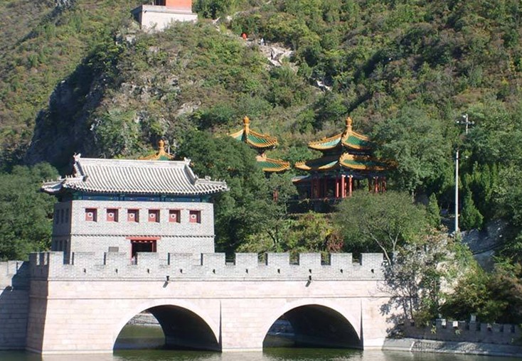 4.軍事防御范圍廣,周圍面積50多公頃,南北券城相距約850米左右,東山頂至西山頂直線距離1150米,防御設(shè)施有南、北券城、城樓、水門、水閘、敵樓、鋪房、烽隧、角樓、炮臺等。長城上的敵樓、烽燧、鋪房,是古代打仗時作為掩體和士兵居住的地方,共修復(fù)了25座,這些按明代規(guī)制燒的城磚,都是靠人工、牲畜往上運(yùn)送材料。高大雄偉的城樓,南北各有一座,樓為三重檐歇山式綠琉璃瓦翦邊,高21米,下面城臺高10米。城樓是指揮作戰(zhàn)的中心,所以建造高大。站在樓上,可以一目了然,有利于觀敵情。城臺下面有券門通甕城。甕城即大城門外的月城,用以增強(qiáng)城池的防御力量。