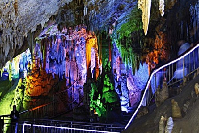 午時(shí),山 里的太陽(yáng)火辣辣的照在山間的小路上背著鑿石工具的他一步一步的在山溝向上爬行,往返山下幾里山道,已使他走的通體出汗,然而爬到上午離開(kāi)的石縫處,涼氣又使得他渾身感到舒暢,這更加了他的好奇感和急切的欲望,他顧不上滿(mǎn)頭的汗水和往返的疲勞便掄鐵錘握鑿的在凹處乒乒乓乓地干了起來(lái),從中午鑿到天黑,晚上借著月光也不休息的干到天亮,第二天從早上干到中午,一個(gè)桶口粗的圓圓的洞口終于被他堅(jiān)韌的毅力鑿開(kāi)了。他顧不上饑餓和疲勞,順著洞眼鉆了進(jìn)去,穿過(guò)薄壁洞口,里面黑漆漆的好像有很大空間,他向里面爬著,爬著,就連鞋子蹭地都發(fā)出嗡嗡的聲響,而且風(fēng)更大了,他感到周身舒適。他摸索著洞壁繼續(xù)向里爬,大約過(guò)了個(gè)把時(shí)辰,也不知道爬進(jìn)了多遠(yuǎn)。突然,他眼前有一點(diǎn)點(diǎn)熒光越聚越大,把他的眼前照的熒熒發(fā)亮,版權(quán)所有山東聊城聊之旅國(guó)際旅行社有限公司,轉(zhuǎn)載必究!他發(fā)現(xiàn)自己已經(jīng)置身于一個(gè)很大很大的洞穴之中。