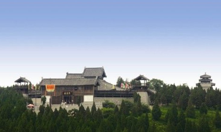 “替天行道”杏黃大旗和“聚義廳”巨匾同時映入眼簾,其意是天罡地煞星的會合之地、108將大本營。 它是景區(qū)的核心建筑,也是當(dāng)年義軍的心臟—指揮中心。建筑強(qiáng)化了水滸特色,追求強(qiáng)悍、粗獷、蒼勁、豪放的陽剛之氣,從建筑到內(nèi)飾均以場景化為主格調(diào)。在建筑造型上體現(xiàn)出拙壯質(zhì)樸與力度,用建筑體現(xiàn)了梁山的個性魅力。該建筑由演兵場、山門、忠義堂、中廊、回廊棧道、議事房及望樓組成。