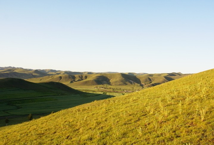 上草原夏季無暑,清新宜人。斑斕的野花,始于壩緣,有的燦若金星,有的纖若紅簪,四季花色各異,早晚濃淡分明。夜幕之時(shí),明月篝火,是訴說情話的好去處;你可以到篝火旁同南來北往的游客盡情的攀談、跳舞、唱歌;還可以獨(dú)自坐在草原上,享受獨(dú)處的妙趣。清晨起床,你可以踏著軟軟的天然草氈,聆聽百鳥清翠的歌聲;也可去看看草原的日出。一輪紅日冉冉升起,綠葉上晶瑩透明的露珠,立刻變成了閃爍的珍珠;各種植物轉(zhuǎn)眼一片嫩綠;馬群、牛群、羊群也在廣闊的草原上開始蠕動(dòng),真是一片 “天蒼蒼、野茫茫,風(fēng)吹草低見牛羊”的草原勝景。