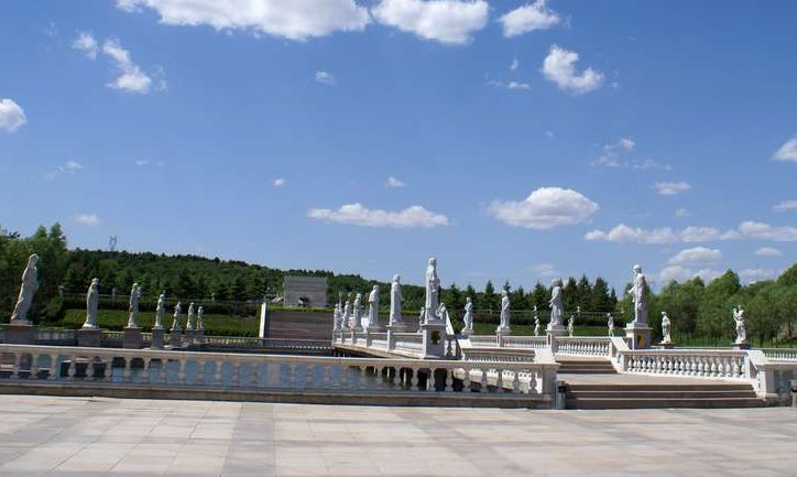 中國(guó)獨(dú)一無(wú)二的水上雕塑廣場(chǎng),長(zhǎng)70米,寬50米,面積為3500平方米,廣場(chǎng)兩側(cè)矗立著16尊著名的漢白玉雕像,這些都是世界雕塑史上的名品。