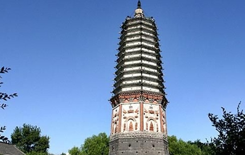 無垢凈光舍利塔:遼寧省文物保護(hù)單位。位于沈陽市皇姑區(qū)塔灣街黃土崗上。建于遼重熙十三年(1044),清崇德五年(1640)重修。是沈陽市現(xiàn)存較古老的建筑之一。從前,這里東連昭陵,南臨沼澤,古色蒼然,"塔灣夕照"為沈陽八景之一。該塔為13層密檐八角形磚塔,高約33米。整體可分地宮、塔座、塔身、塔檐、塔剎5部分。