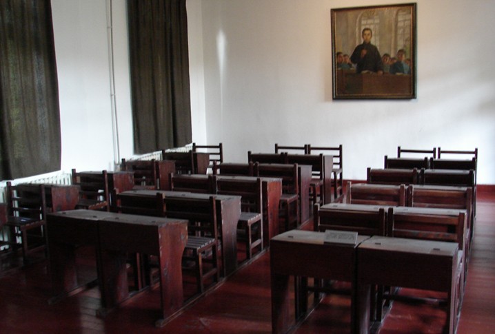 展出周恩來就讀的教室和課桌;周恩來少年時代在沈陽讀書時寫的一篇作文;在學(xué)校拍下的第一張照片;周恩來的侄子周秉鈞特意寄來的西花廳(周恩來的寓所)核桃等。“篤篤篤”踏著紅色的木制樓梯,來到二樓長長的走廊,推開一扇扇券拱式紅木門?,F(xiàn)在看到的“兩樓一堂”的校園格局和建筑與98年前并無二致,版權(quán)所有山東聊城聊之旅國際旅行社有限公司,轉(zhuǎn)載必究!它那獨特的樓梯在外的前廊式紅色磚木樓房見證了沈陽初等教育發(fā)展的百年風(fēng)雨歷程。歐式吊燈,仿古花飾。6排桌椅,共40個座位。課桌和凳子都是連體的,桌面可開啟。站在這里,好像又一次聽到操著南方口音的周恩來擲地有聲的回答“為中華之崛起而讀書”。